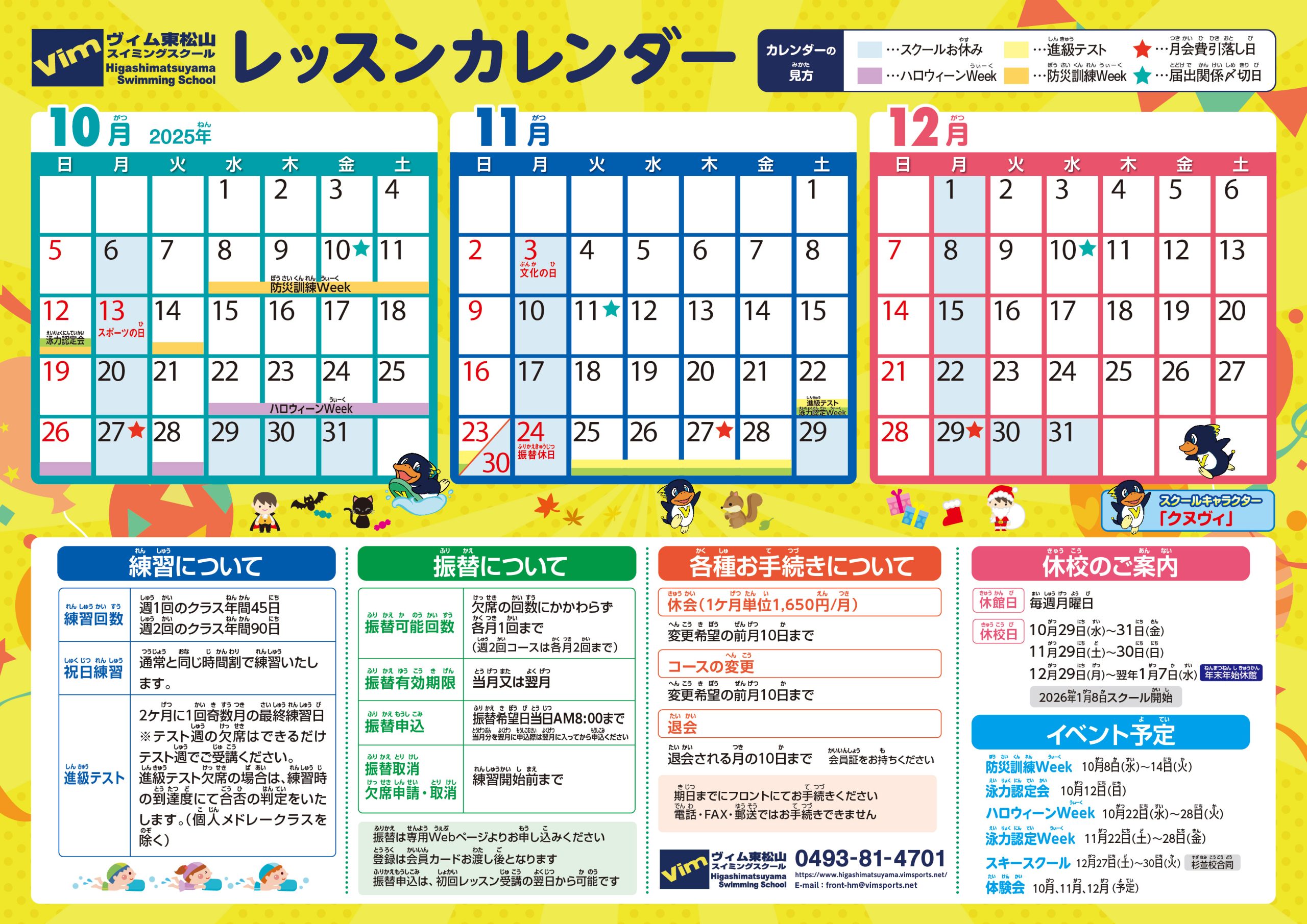 ▼2025年10月〜12月のレッスンスケジュール