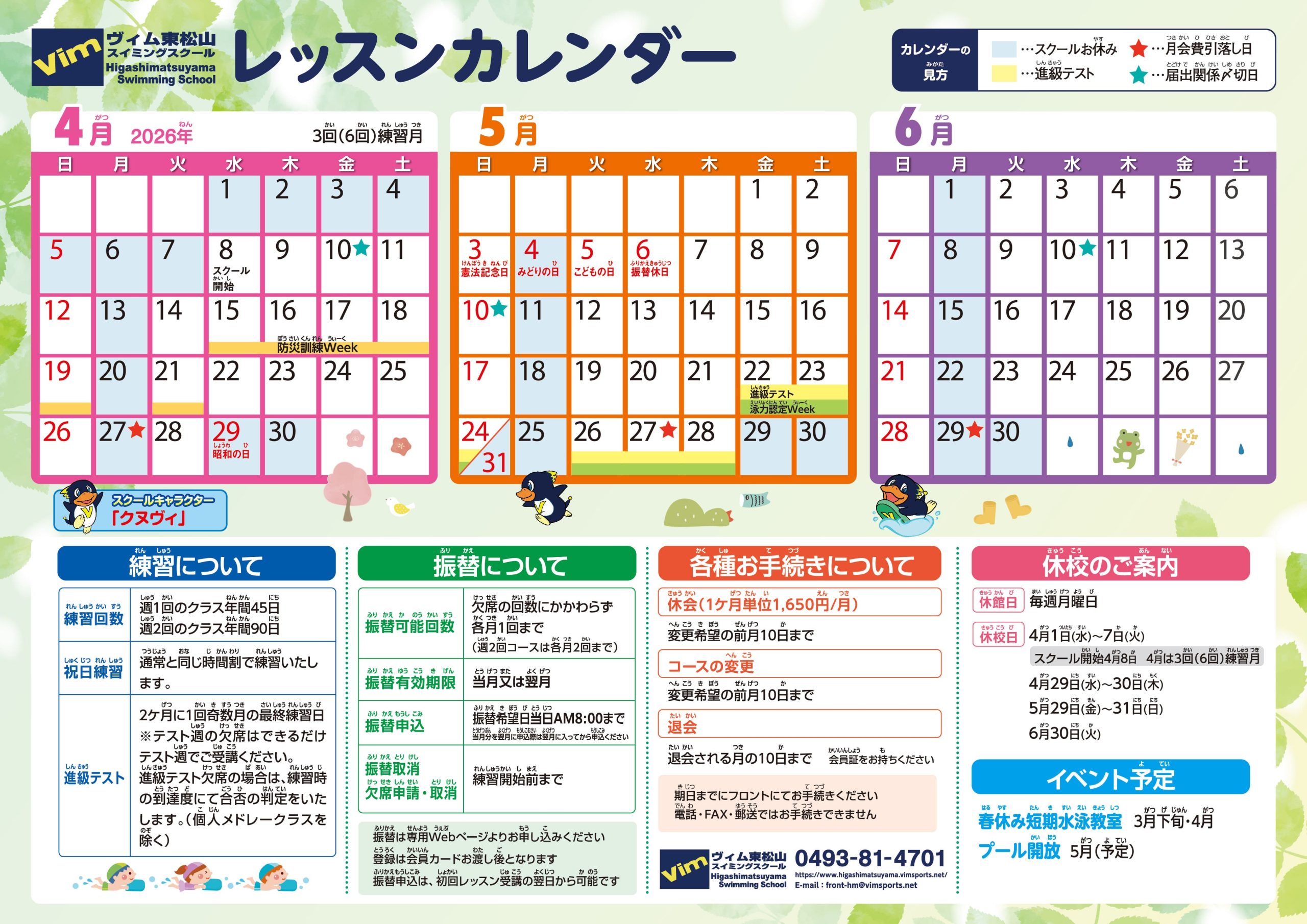 ▼2026年4月〜6月のレッスンスケジュール